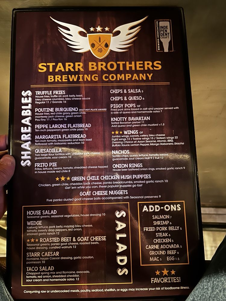 Starr Brothers Brewing Company Menu (Update 2025)